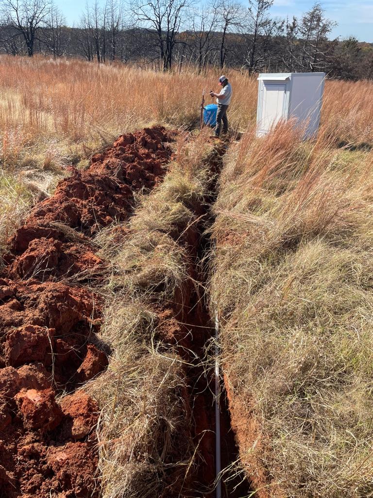 Technician trenched for a water line, buried installed water line and installed new well house.