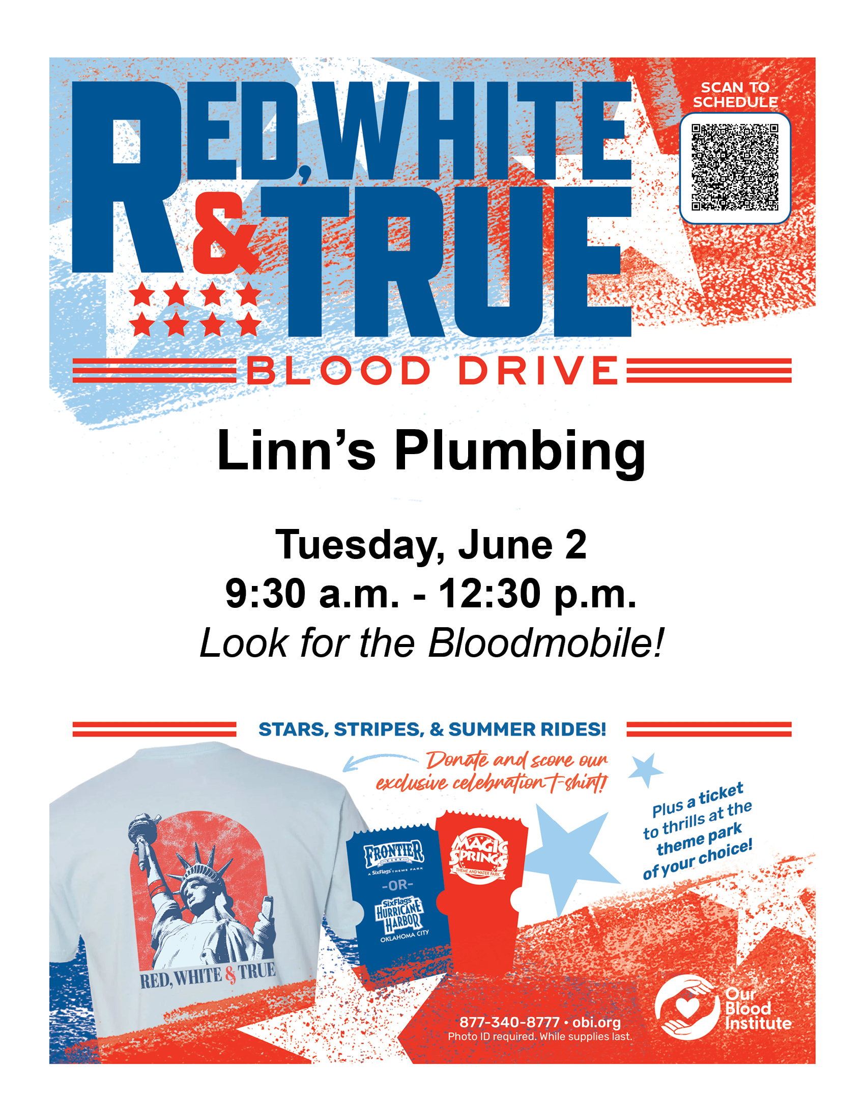 Linn’s Plumbing is proud to host the Red, White & True Blood Drive. We’re bringing neighbors together to help save lives—look for the Bloodmobile parked right in our lot!